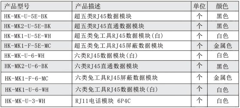 10.产品类别:提供Cat.3/Cat.5e/Cat.6/Cat.6A系列模块;